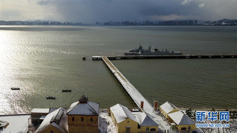 這是12月8日無(wú)人機(jī)拍攝的威海劉公島鐵碼頭。這里曾是北洋海軍的母港。 新華社記者郭緒雷攝