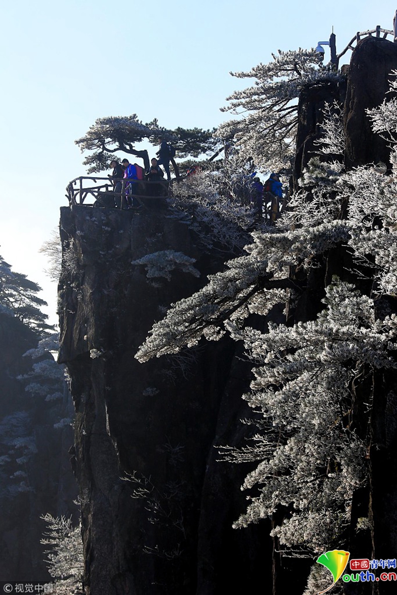 安徽黃山出現(xiàn)了四月陽(yáng)春罕見(jiàn)的霧凇奇觀。