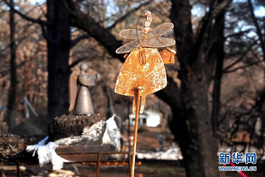 這是12月7日在美國加利福尼亞州比尤特縣天堂鎮(zhèn)拍攝的山火廢墟。 新華社記者吳曉凌攝