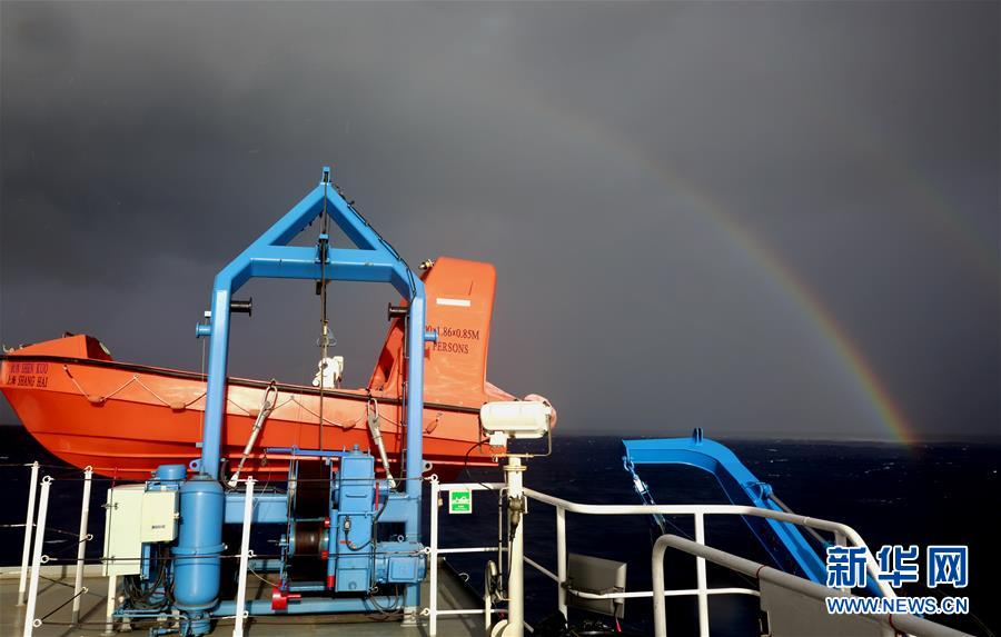 “沈括”號停泊在馬里亞納海溝“挑戰(zhàn)者深淵”海域(12月14日攝)。