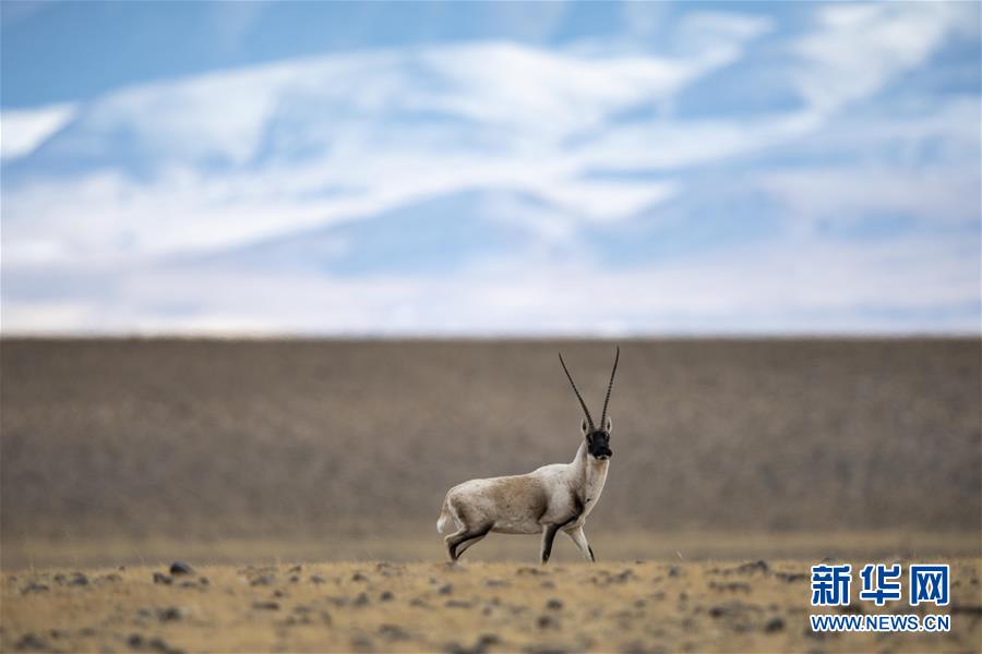 一只藏羚羊在西藏羌塘國家級自然保護(hù)區(qū)的原野上活動(dòng)(12月14日攝)。 新華社記者 張汝鋒 攝