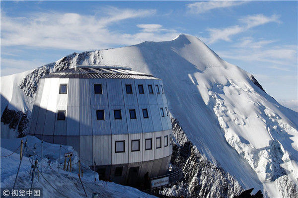 2012年8月6日消息(具體拍攝時間不詳),法國圣熱爾維,一座坐落在阿爾卑斯山脈上海拔3835米的旅館近日落成,旅館目前處于試運(yùn)行狀態(tài)直到8月底向公眾開放。這座旅館共有120個床位,達(dá)到了高環(huán)境質(zhì)量標(biāo)準(zhǔn)。