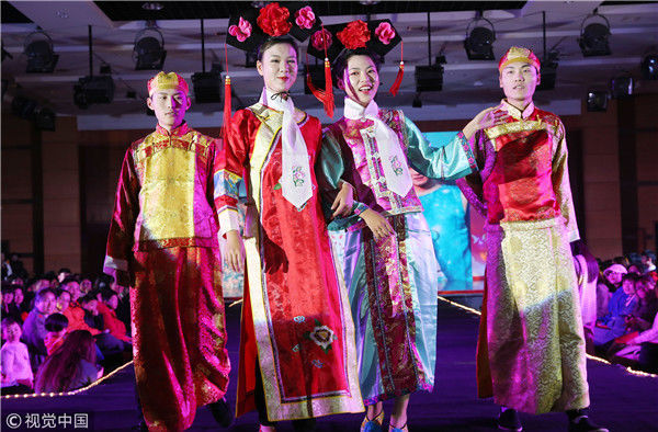 2018年12月17日晚,江蘇南通大學(xué)紡織服裝學(xué)院慶祝改革開放40周年首屆非專業(yè)新生服飾秀精彩上演,41位模特身著極具年代感的服裝,展示了55套穿搭造型,演繹了40年來(lái)不同年代的衣著風(fēng)采。