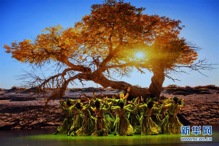 12月18日,在蘭州音樂(lè)廳,西北民族大學(xué)演員表演舞蹈《胡楊贊》。 新華社記者范培珅攝