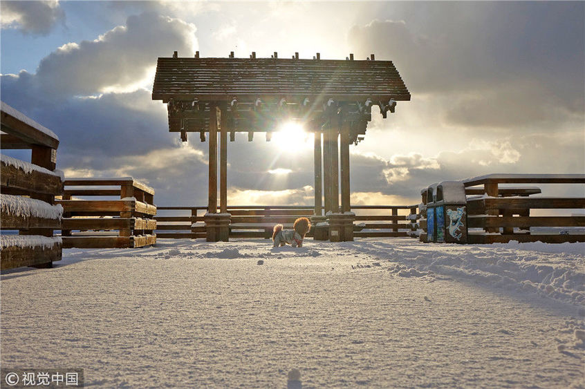 2018年12月7日,山東煙臺,雪后的海濱景色。