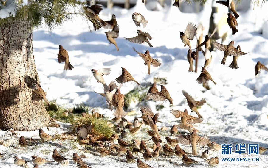 12月19日,小鳥在布達拉宮廣場上的雪地里撒歡。 12月18日,西藏拉薩市迎來今年入冬以來的首場降雪。19日清晨,拉薩雪后初霽,處處銀裝素裹,盡顯雪域高原之美。 新華社記者覺果攝