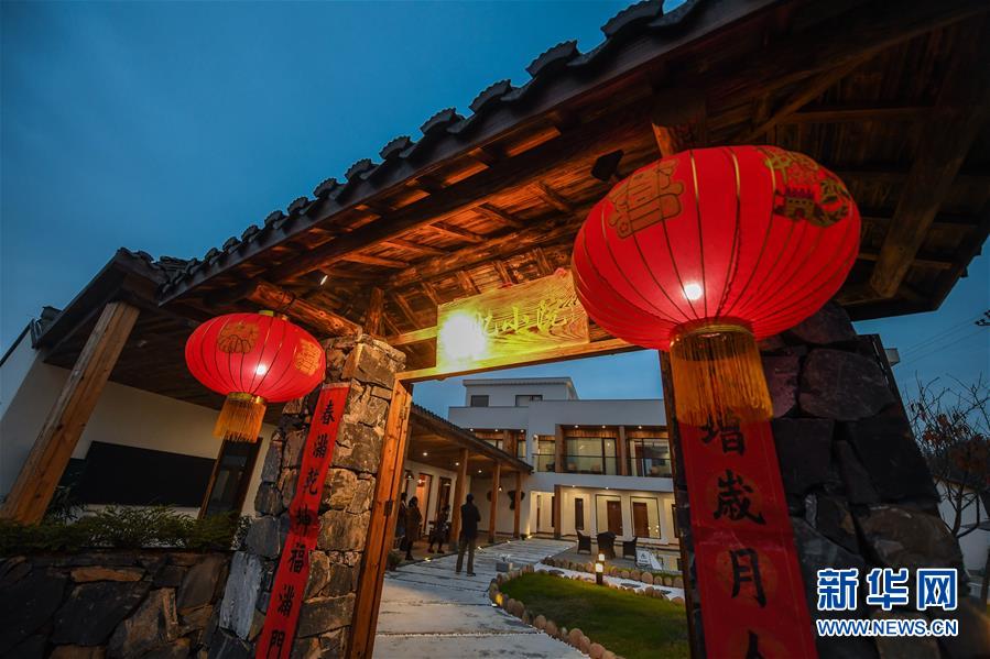 夜色中的民宿“初憶小院”(12月19日攝)。該民宿是河橋鎮(zhèn)“90后”女孩章淑貞開辦的,民宿融入了大量的現(xiàn)代建筑設(shè)計風格,深受年輕人的喜愛。 新華社記者 徐昱 攝