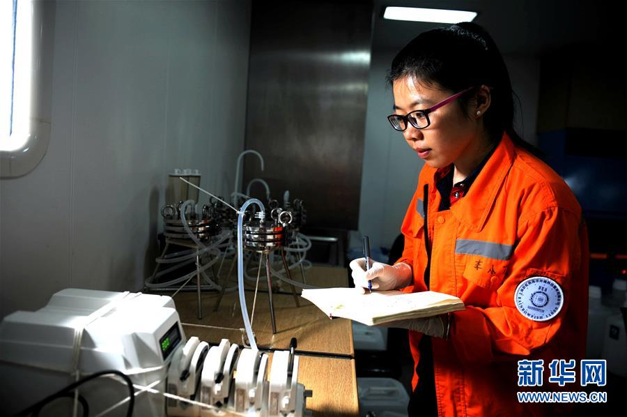 12月18日,來自中國科學(xué)院海洋研究所的博士后李小花在“沈括”號(hào)實(shí)驗(yàn)室工作。新華社記者 張建松 攝