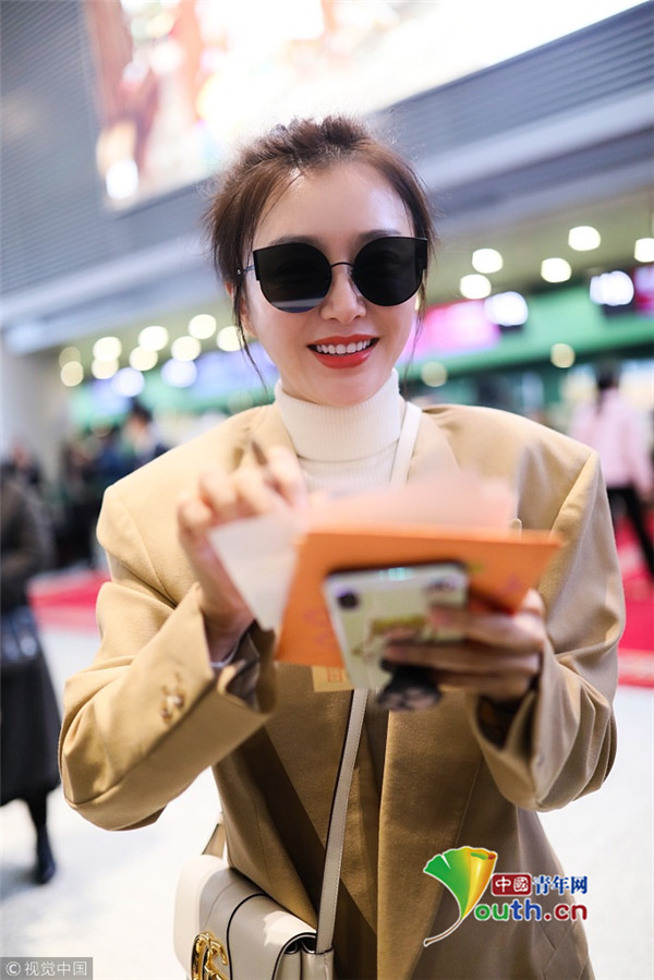 2018年12月11日,上海,秦嵐現(xiàn)身機(jī)場。她穿淺西裝配高領(lǐng)毛衣溫暖又時(shí)尚,梳丸子頭清新減齡,機(jī)場獲粉絲送告白信,嬌羞嘟嘴賣萌少女范十足。