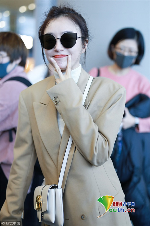 2018年12月11日,上海,秦嵐現(xiàn)身機場。她穿淺西裝配高領毛衣溫暖又時尚,梳丸子頭清新減齡,機場獲粉絲送告白信,嬌羞嘟嘴賣萌少女范十足。