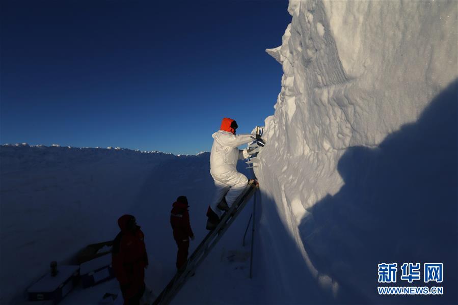 在正處極晝的南極,中國第35次南極科考隊“夜以繼日”,于19日至20日趁著“白夜”完成一次雪坑樣品采集。