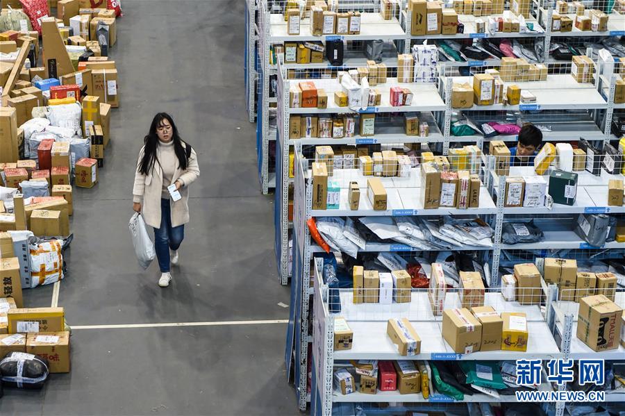 南京航空航天大學學生在校園臨時快遞取件點領取快遞(11月13日攝)。 新華社記者 李博 攝