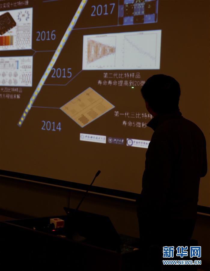 2017年5月3日,中國科學(xué)技術(shù)大學(xué)潘建偉院士在上海宣布,我國科研團隊成功構(gòu)建的光量子計算機,首次演示了超越早期經(jīng)典計算機的量子計算能力。這是潘建偉院士在介紹“超導(dǎo)量子計算機路線圖”。 新華社記者 金立旺攝