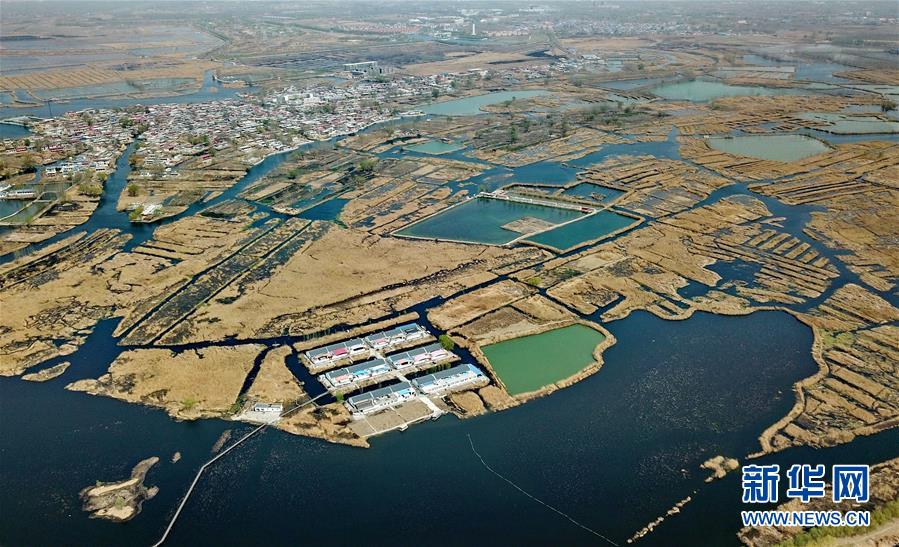 這是無人機拍攝的雄安新區(qū)白洋淀內(nèi)的村莊(3月29日攝)。 新華社記者 楊世堯攝