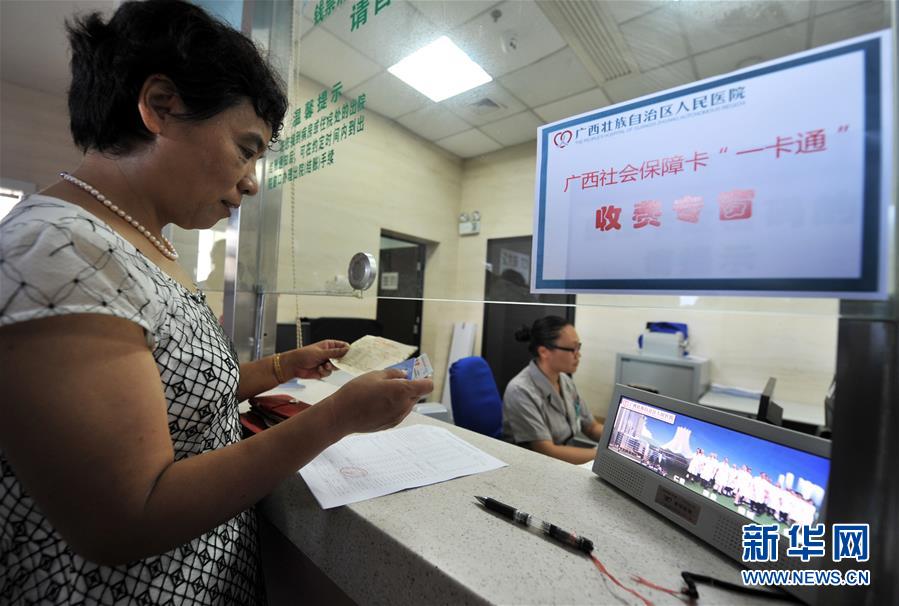 在廣西壯族自治區(qū)人民醫(yī)院,從北海到南寧異地就醫(yī)的鄭曉榮持社會保障卡在結算醫(yī)藥費(2015年6月30日攝)。 歷史進步的背后,必有堅強領導力量的引領。 “堅持黨的領導,全面從嚴治黨,是改革開放取得成功的關鍵和根本。”習近平總書記總結改革開放40年歷史和實踐作出這一重要論斷。 歷史關頭,中國共產黨的關鍵抉擇,改變了當代中國的命運; 宏偉征程,中國共產黨帶領億萬人民在改革開放實踐中,實現(xiàn)歷史性跨越; 面向未來,中國共產黨肩負實現(xiàn)中華民族偉大復興的歷史使命,把改革開放繼續(xù)推向前進。 新華社記者李斌攝
