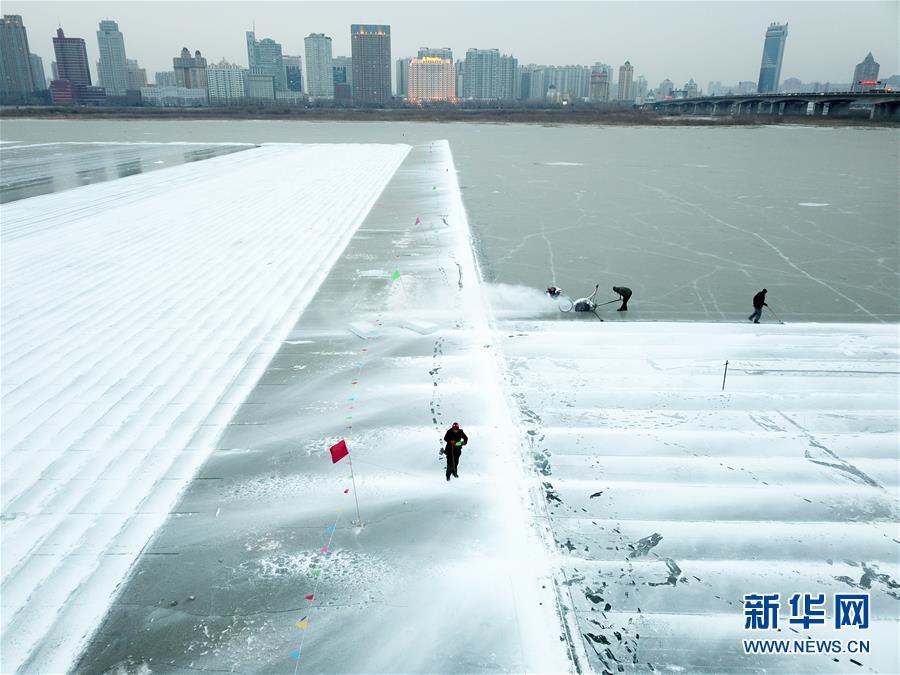 2018年12月13日,黑龍江省哈爾濱市,國內(nèi)最大的雪雕盛會太陽島雪博會正在緊鑼密鼓建設中。