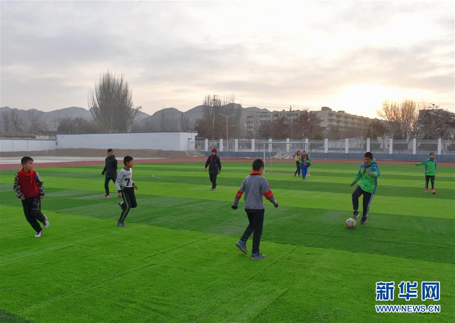 烏什·衢州小學學生在操場上踢球(12月19日攝)。