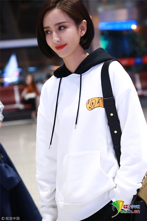 10月18日,湖南長沙, 佟麗婭錄完《快樂大本營 》現(xiàn)身長沙機(jī)場,她梳利落短發(fā)穿連帽衛(wèi)衣,笑容甜美氣質(zhì)佳。