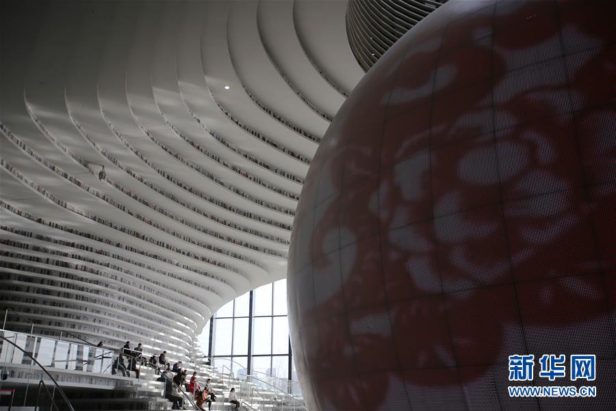 這是12月27日拍攝的天津濱海新區(qū)圖書館中庭。 濱海新區(qū)圖書館位于天津濱海文化中心,2017年10月1日正式開館,設(shè)計立意為“濱海之眼”和“書山有路勤為徑”。圖書館現(xiàn)有藏書60多萬冊,一年多來接待讀者約280萬人次,已成為濱海新區(qū)的文化“新地標”。 新華社記者安希雅攝