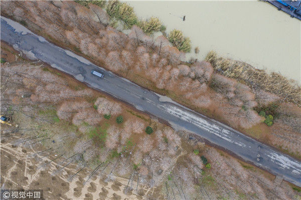 2018年12月27日,江蘇淮安,航拍京杭大運河淮安段冬日景色。