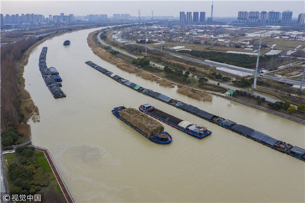 2018年12月27日,江蘇淮安,航拍京杭大運河淮安段冬日景色。