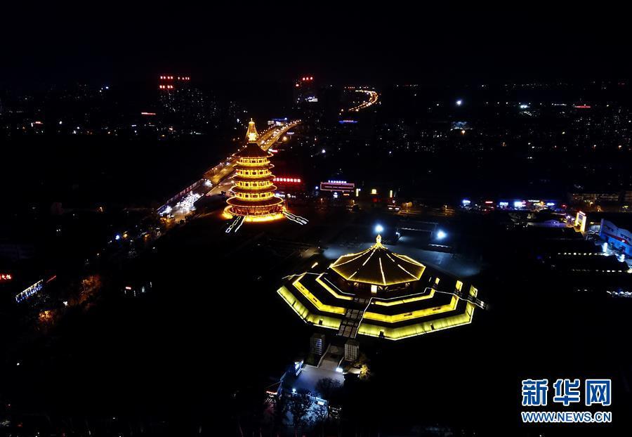 隋唐洛陽(yáng)城國(guó)家遺址公園內(nèi)的明堂(右)和天堂(12月26日無(wú)人機(jī)拍攝)。新華社記者馮大鵬攝