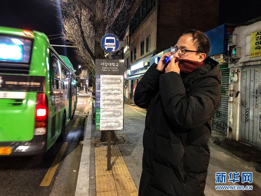 12月28日,一名行人在韓國(guó)首爾西江大學(xué)附近的一個(gè)公交站打電話。據(jù)韓國(guó)氣象部門28日消息,全國(guó)各地當(dāng)天迎來(lái)強(qiáng)寒潮,首爾地區(qū)體感溫度達(dá)零下19.3攝氏度,中部地區(qū)和南部地區(qū)已發(fā)布低溫預(yù)警。新華社記者 王婧嬙 攝