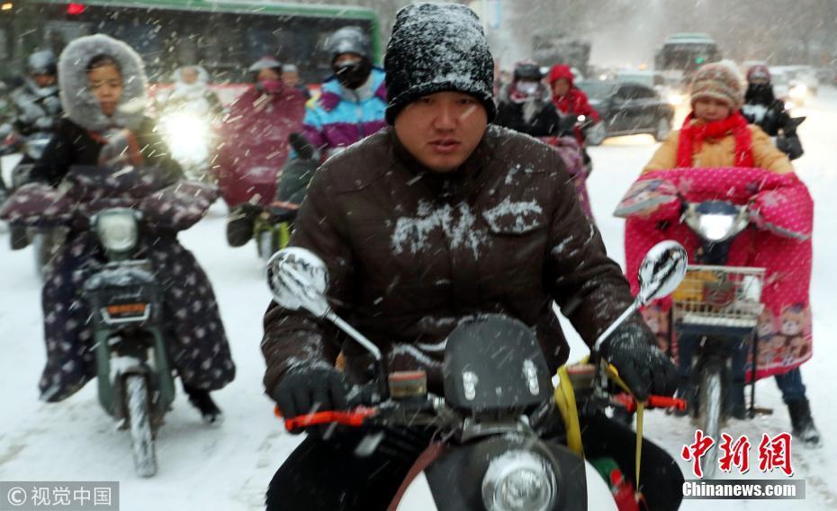 河北石家莊井陘縣縣城,人們在雪中出行。受多股冷空氣的持續(xù)影響石家莊出現(xiàn)降雪、降溫天氣。圖片來源:視覺中國