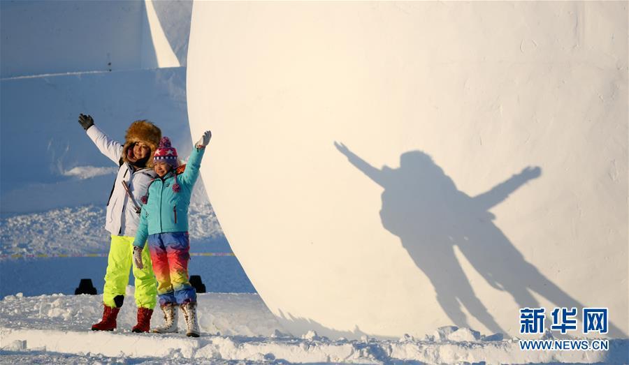 12月29日,游客在太陽島雪博會園區(qū)游玩。 當(dāng)日,第31屆哈爾濱太陽島國際雪雕藝術(shù)博覽會正式開園。本屆太陽島雪博會以“歡樂雪博會·夢幻雪域游”為主題,占地90萬平方米,分為五大景區(qū)。 新華社記者 王建威 攝