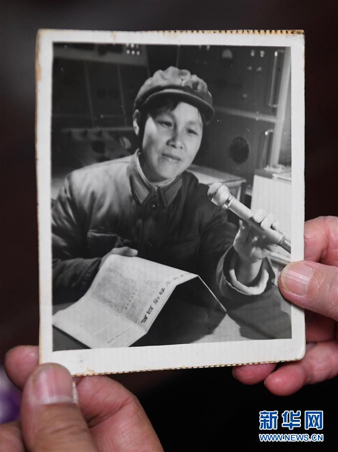 原“福建前線廣播電臺”廣播員陳菲菲當年向金門播音的老照片。 新華社記者 姜克紅 攝
