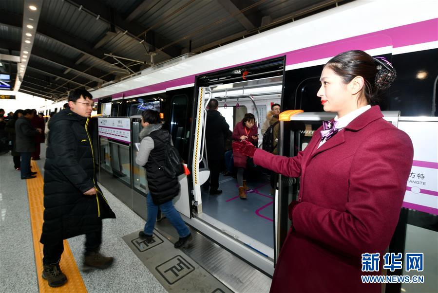 2019年1月1日,工作人員在濟南軌道交通1號線創(chuàng)新谷站引導乘客。