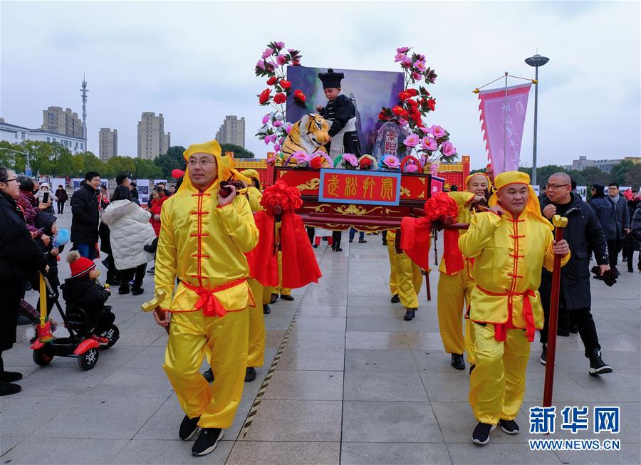 2019年1月1日在展演活動(dòng)上拍攝的“抬閣”表演。2019年元旦,浙江省桐鄉(xiāng)市濮院鎮(zhèn)舉辦新年“非遺文化藝術(shù)節(jié)”活動(dòng),濮院鎮(zhèn)下屬多個(gè)鄉(xiāng)村的傳統(tǒng)美食制作、手工藝品、非遺文化表演等鄉(xiāng)村特色非遺項(xiàng)目在濮院鎮(zhèn)中心廣場(chǎng)進(jìn)行集中展示展演。新華社記者 徐昱 攝