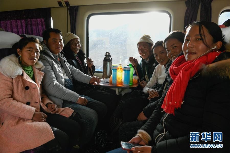 春運臨近,西藏鐵路客流逐漸增大。從拉薩發(fā)往西寧的中國鐵路青藏集團公司西寧客運段Z6802次旅客列車滿載著游客、務工人員、學生、朝佛信眾等,穿梭在白雪皚皚的高原上。