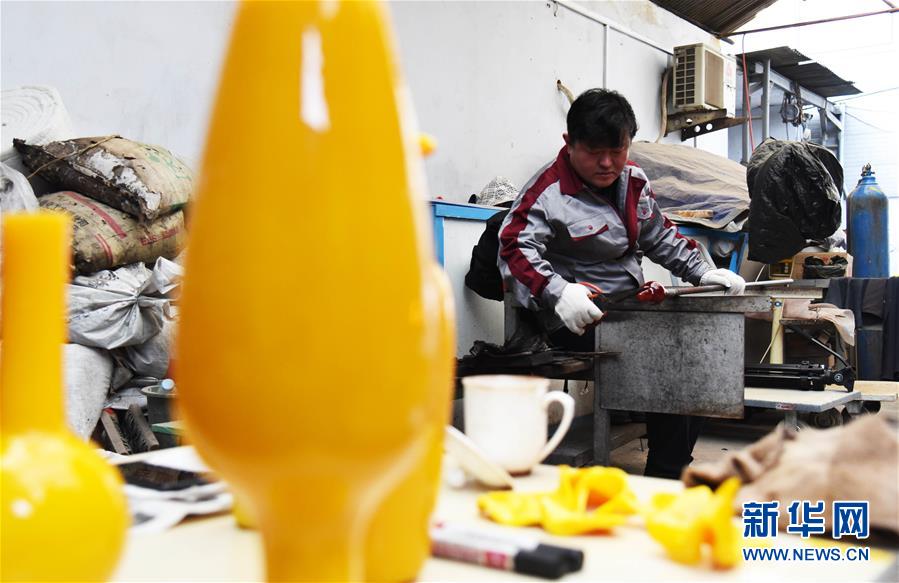 1月12日,孫云毅在制作雞油黃琉璃藝術(shù)品。 新華社記者王凱攝