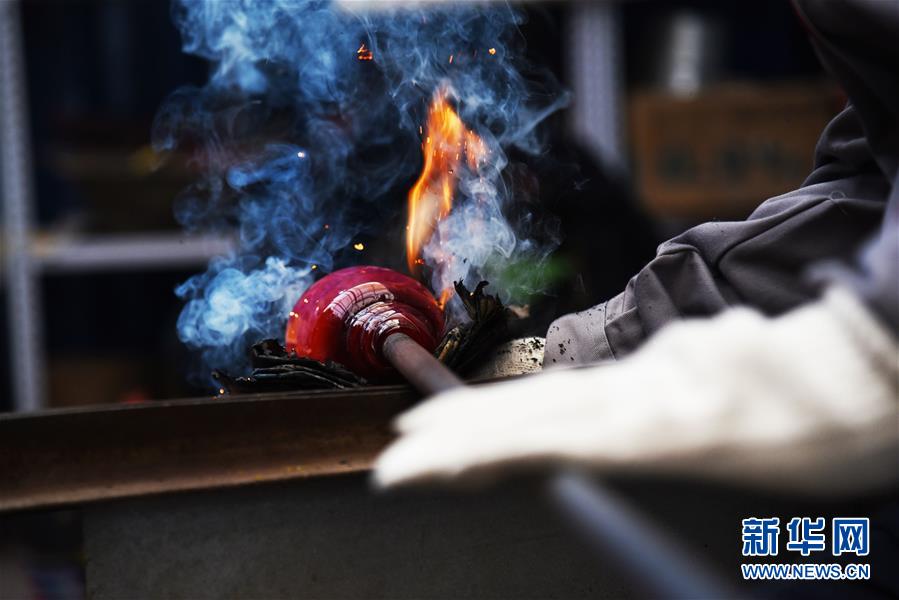 1月12日,孫云毅在制作雞油黃琉璃藝術(shù)品。 新華社記者王凱攝