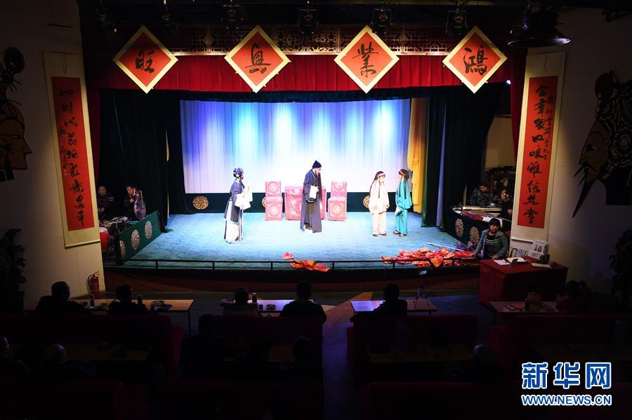 在甘肅省蘭州市城關(guān)區(qū),一家創(chuàng)辦不久的戲曲“小劇場(chǎng)”——頤融堂戲曲體驗(yàn)館里每天都會(huì)唱響嘹亮激昂的秦腔折子戲。在這里戲曲愛(ài)好者只需要消費(fèi)5元錢喝杯清茶就可以看一天表演,也可登臺(tái)獻(xiàn)藝,以戲會(huì)友。因價(jià)格低廉、戲曲豐富,“小劇場(chǎng)”深受戲曲愛(ài)好者的喜愛(ài)。 新華社記者 范培珅 攝