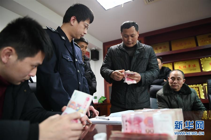 1月14日,農(nóng)民工領(lǐng)取被拖欠的工資。