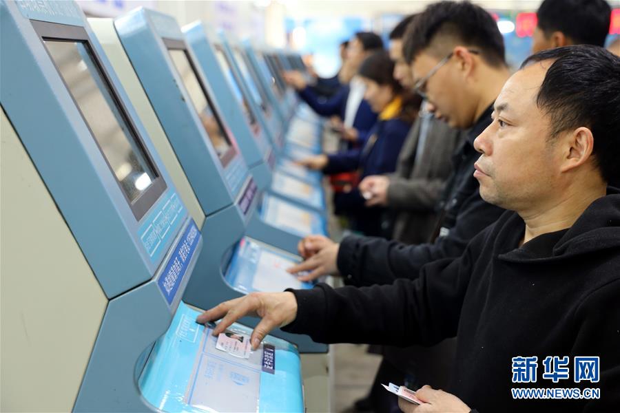1月15日,旅客在廣州火車站售票大廳內(nèi)的自助售票終端上購票。 為適應互聯(lián)網(wǎng)購票旅客比重持續(xù)上升趨勢,廣州火車站在籌備2019年春運票務業(yè)務時,優(yōu)化互聯(lián)網(wǎng)購票取票和退改簽業(yè)務辦理流程設(shè)計,提升效率,方便旅客出行。 新華社記者劉大偉攝