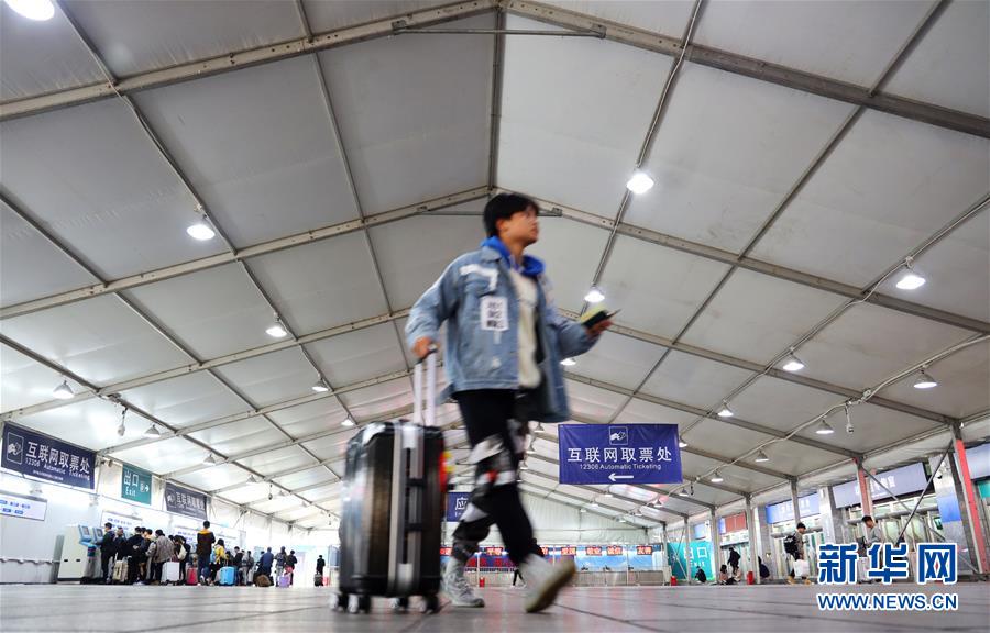 1月15日,一名旅客在廣州火車站售票大廳外臨時搭建的互聯(lián)網(wǎng)購票取票大棚內(nèi)取票。 為適應互聯(lián)網(wǎng)購票旅客比重持續(xù)上升趨勢,廣州火車站在籌備2019年春運票務業(yè)務時,優(yōu)化互聯(lián)網(wǎng)購票取票和退改簽業(yè)務辦理流程設(shè)計,提升效率,方便旅客出行。 新華社記者劉大偉攝