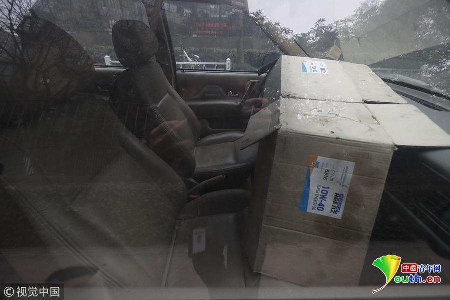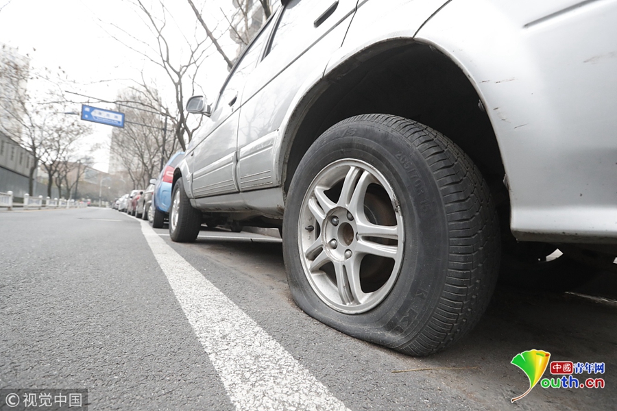 因?yàn)槭敲赓M(fèi)停車位,就成為僵尸車的天堂。粗粗?jǐn)?shù)了一遍,至少有10余輛汽車裹著車衣,被落葉等臟物覆蓋;有的車最后的年檢標(biāo)志是3年前,車胎漏氣,車內(nèi)也是堆著雜物。