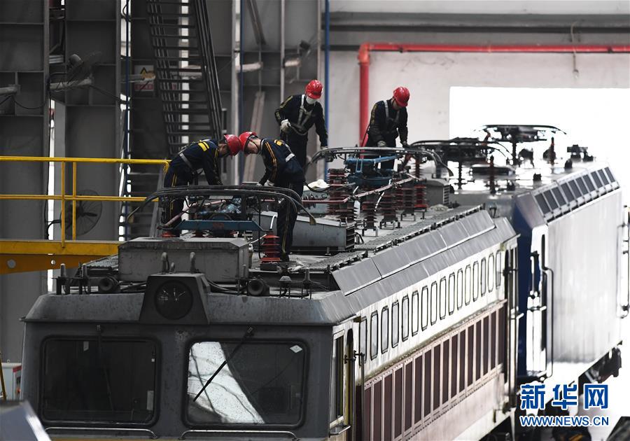 1月16日,重慶機(jī)務(wù)段職工在對(duì)機(jī)車(chē)車(chē)頂設(shè)備進(jìn)行檢修。 臨近春運(yùn),為確保春運(yùn)旅客和貨物列車(chē)運(yùn)輸安全,中國(guó)鐵路成都局集團(tuán)有限公司重慶機(jī)務(wù)段對(duì)全段機(jī)車(chē)進(jìn)行專(zhuān)項(xiàng)檢查、整修,為即將到來(lái)的春運(yùn)做準(zhǔn)備。 新華社記者王全超攝