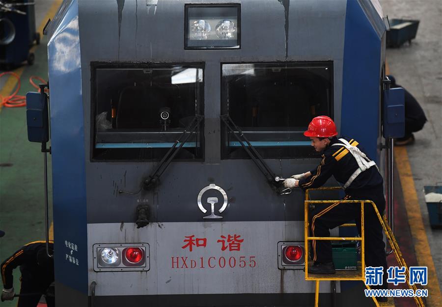 1月16日,重慶機(jī)務(wù)段職工在對(duì)機(jī)車(chē)雨刮器進(jìn)行檢修。 臨近春運(yùn),為確保春運(yùn)旅客和貨物列車(chē)運(yùn)輸安全,中國(guó)鐵路成都局集團(tuán)有限公司重慶機(jī)務(wù)段對(duì)全段機(jī)車(chē)進(jìn)行專(zhuān)項(xiàng)檢查、整修,為即將到來(lái)的春運(yùn)做準(zhǔn)備。 新華社記者王全超攝
