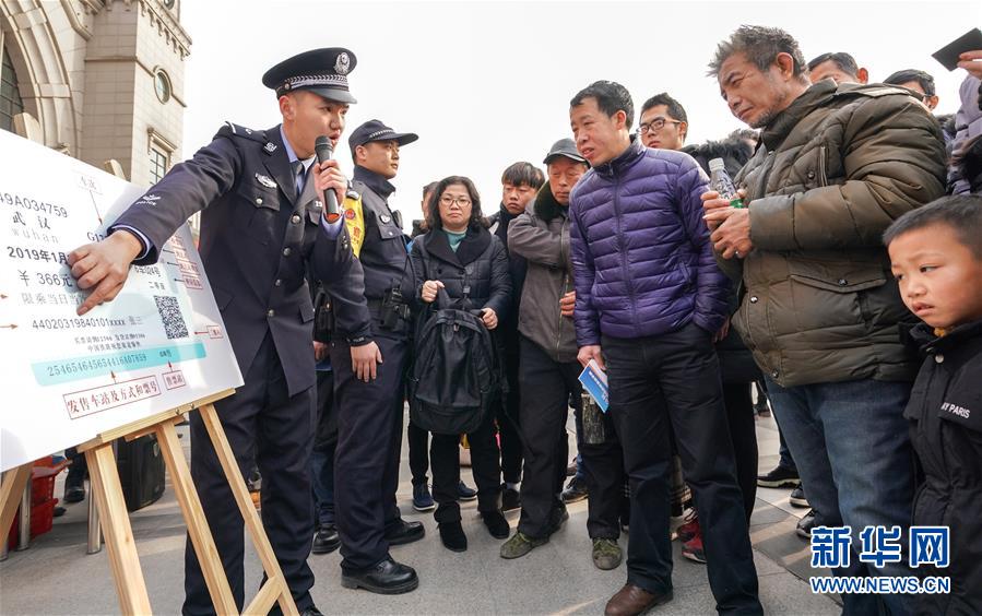1月16日,民警講解真假火車票辨識(shí)方法。 當(dāng)日,武漢鐵路公安處在漢口火車站舉行警營(yíng)開放日活動(dòng),讓旅客零距離接觸警務(wù)安全工作,營(yíng)造良好的春運(yùn)出行環(huán)境。 新華社記者程敏攝