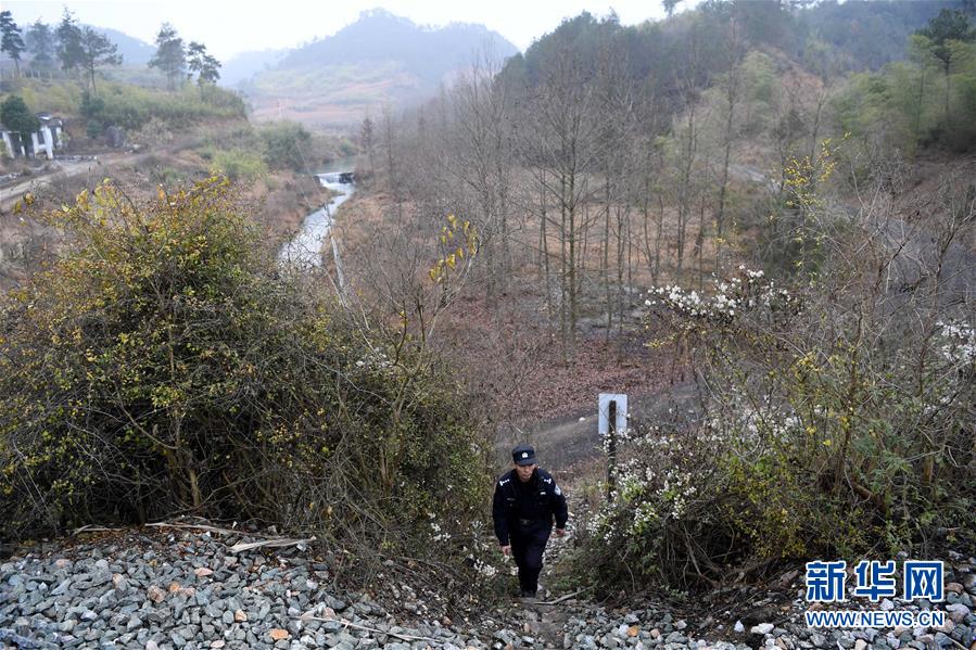 1月16日,汪茂才在巡線途中。 今年52歲的汪茂才是合肥鐵路公安處黃山站派出所歙縣警務室的一名線路民警,他所在的警務室負責皖南山區(qū)皖贛鐵路線約80公里范圍內的線路安全。從警30年來,線路巡查、鐵路安全知識宣傳等是汪茂才的日常工作。多年來的徒步巡線,讓汪茂才練就了一雙快腿,十公里的路,汪茂才兩個小時就能走完。 汪茂才負責的鐵路沿線周邊村莊較多,很多房子都是沿鐵路線而建,有些村民為了圖方便,違規(guī)穿越鐵路線。加強對鐵路沿線居民的安全宣傳教育,成為汪茂才的一項重要工作,沿線村民的安全意識也越來越高。 對汪茂才這樣的線路民警來說,大多數(shù)時候都是“獨行俠”,“當線路民警就要耐得住寂寞,守得住孤獨,與大山為伴,與線路為友,盡己所能,為鐵路安全運行保駕護航?!蓖裘耪f。 新華社記者劉軍喜攝