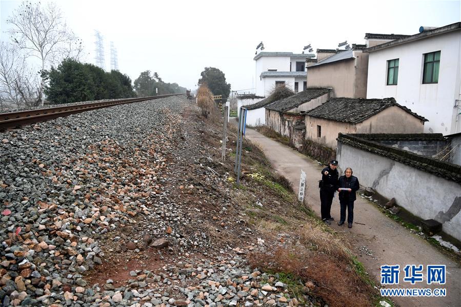 1月16日,汪茂才向鐵路沿線村民宣傳鐵路安全知識。 今年52歲的汪茂才是合肥鐵路公安處黃山站派出所歙縣警務室的一名線路民警,他所在的警務室負責皖南山區(qū)皖贛鐵路線約80公里范圍內的線路安全。從警30年來,線路巡查、鐵路安全知識宣傳等是汪茂才的日常工作。多年來的徒步巡線,讓汪茂才練就了一雙快腿,十公里的路,汪茂才兩個小時就能走完。 汪茂才負責的鐵路沿線周邊村莊較多,很多房子都是沿鐵路線而建,有些村民為了圖方便,違規(guī)穿越鐵路線。加強對鐵路沿線居民的安全宣傳教育,成為汪茂才的一項重要工作,沿線村民的安全意識也越來越高。 對汪茂才這樣的線路民警來說,大多數(shù)時候都是“獨行俠”,“當線路民警就要耐得住寂寞,守得住孤獨,與大山為伴,與線路為友,盡己所能,為鐵路安全運行保駕護航。”汪茂才說。 新華社記者劉軍喜攝