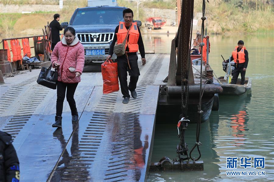 1月22日,渡輪在八吉渡口接送群眾(無人機拍攝)。新華社記者 歐東衢 攝