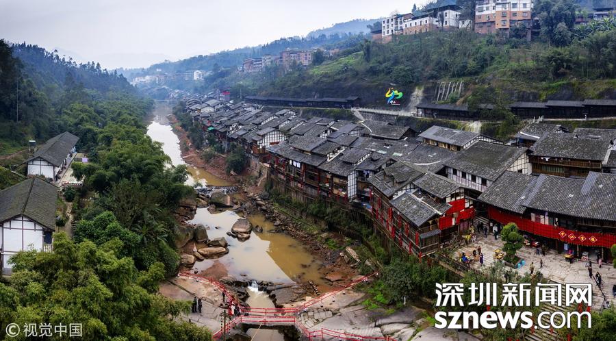 訊 2019年1月26日,重慶中山古鎮(zhèn),880桌“千米長宴”5萬人共品年味。880多張席桌在老街屋檐下一字擺開,“千米長宴”正式開席。