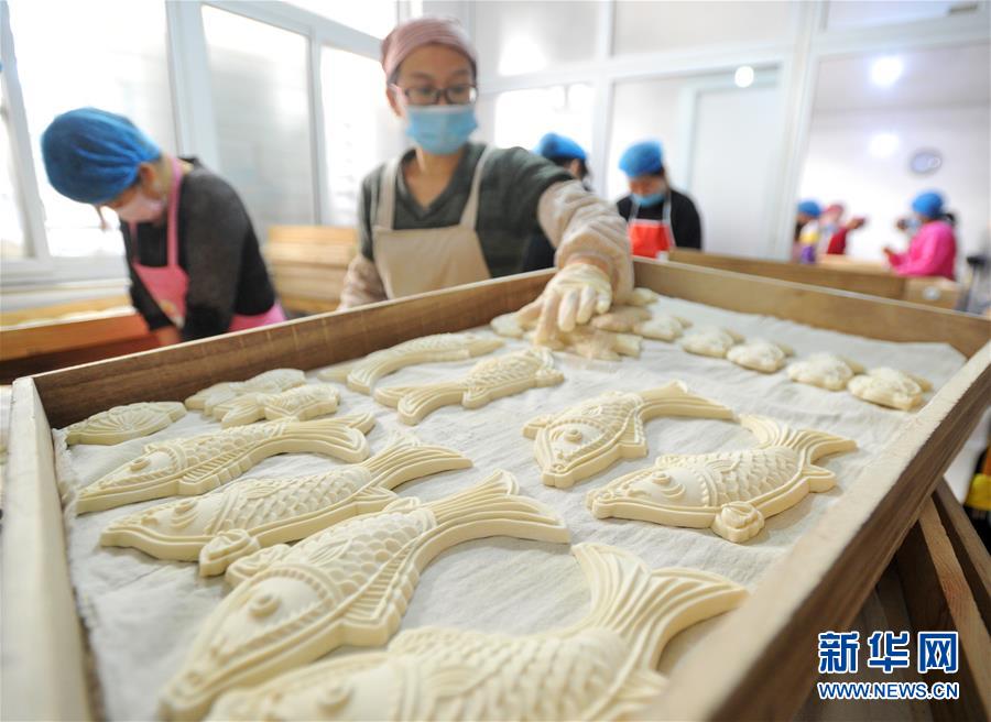 1月31日,河北黃驊市一家面花作坊的工人將制作好的面花擺放在蒸屜里。 河北黃驊市有著過年蒸面花的習(xí)俗。春節(jié)前夕,當(dāng)?shù)孛婊ㄖ谱鞴S加班加點(diǎn)制作面花,供應(yīng)春節(jié)市場。 新華社記者牟宇攝