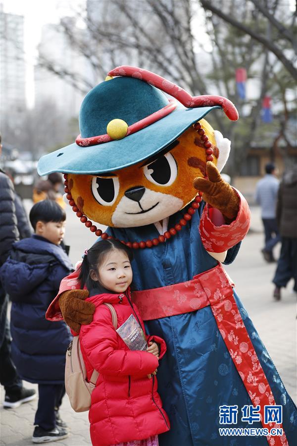 2月5日,在韓國(guó)京畿道龍仁市的韓國(guó)民俗村,一名中國(guó)小朋友和工作人員扮成的玩偶合影。 雖然中國(guó)人過(guò)春節(jié)的傳統(tǒng)是返鄉(xiāng)回家,但越來(lái)越多的國(guó)人選擇在春節(jié)期間走出國(guó)門(mén),利用春節(jié)假期外出旅游。 新華社記者 王婧嬙 攝