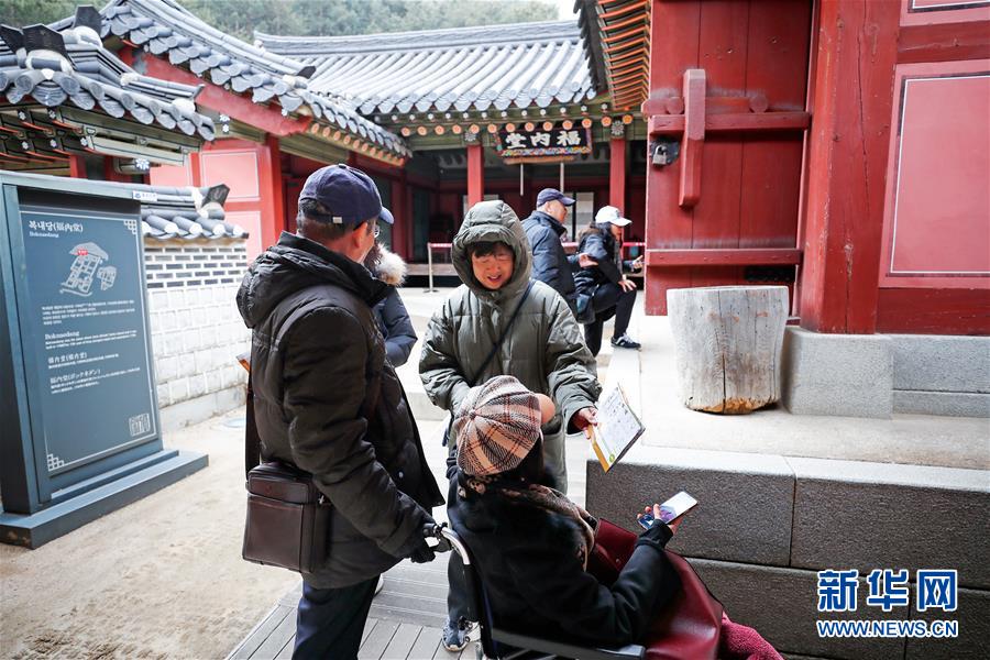 2月6日,在韓國水原市,幾名中國游客在水原華城行宮內研究導覽圖。 雖然中國人過春節(jié)的傳統是返鄉(xiāng)回家,但越來越多的國人選擇在春節(jié)期間走出國門,利用春節(jié)假期外出旅游。 新華社記者 王婧嬙 攝